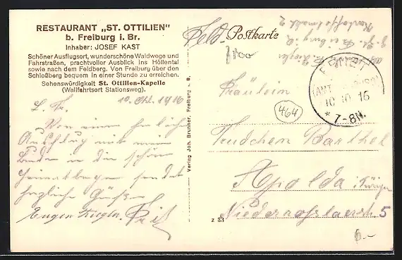 AK St. Ottilien / Freiburg, Restaurant St. Ottilien, Inh. Josef Kast