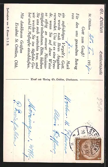 alte Ansichtskarte, gelaufen 1937, Abriebspur li. unten, guter Zustand