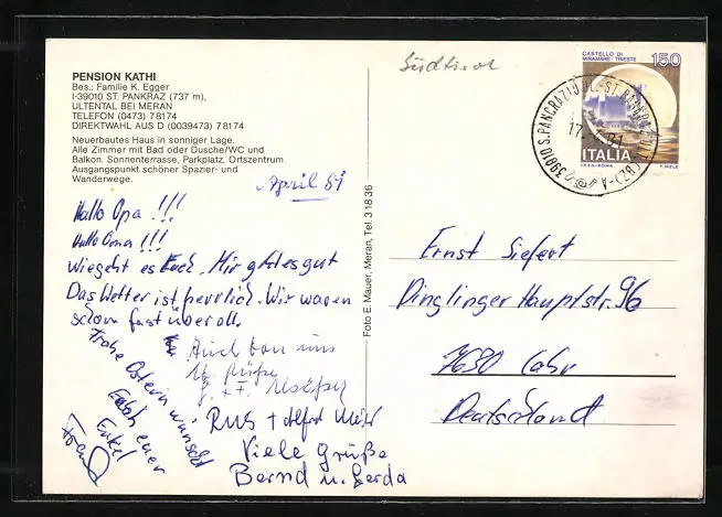 AK St. Pankraz - Ultental, Pension Kathi in drei Ansichten