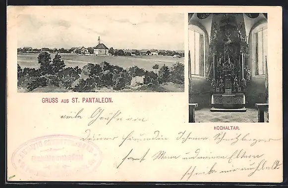 AK St. Pantaleon /O.-Oe., Ortsansicht und Hochaltar