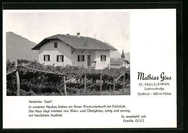 AK St. Pauls /Eppan, Pension Mathias Gius, Justinastrasse