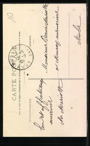 Personenbezogene Daten auf der Rückseite der Karte wurden durch blauen Textmarker unkenntlich gemacht. Die blauen Stellen sind auf die Vorderseite durchgeweicht und wirken sich negativ auf das Postkartenfoto aus