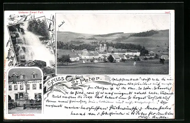 AK St. Peter, Gesamtansicht, Bertoldsbrunnen, Unterer Zwei-Fall