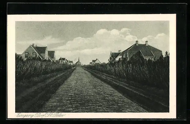 AK St. Peter /Nordsee, Eingang zum Dorf, Kirche