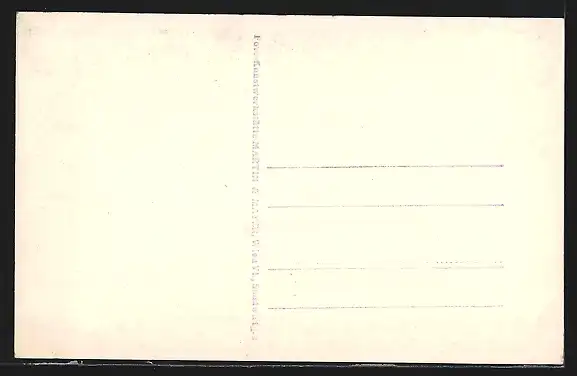 Personenbezogene Daten auf der Rückseite der Karte wurden durch blauen Textmarker unkenntlich gemacht. Die blauen Stellen sind auf die Vorderseite durchgeweicht und wirken sich negativ auf das Postkartenfoto aus