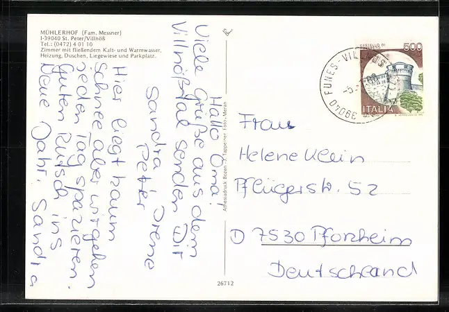 AK St. Peter i. Villnöss, Mühlerhof mit Terrasse