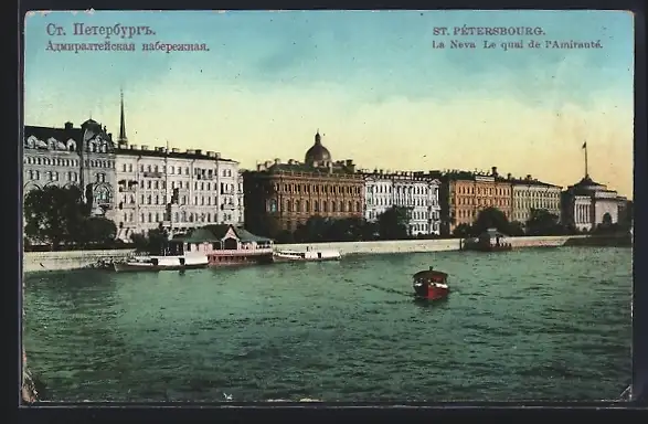 AK St. Petersbourg, La Neva, Le quai de l'Amiraute, Dampfer