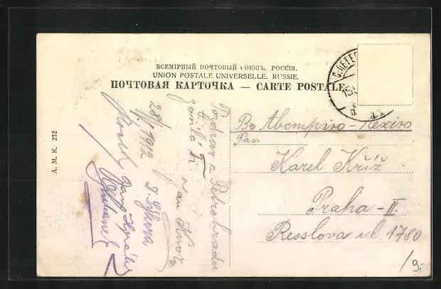 alte Ansichtskarte, gelaufen, Briefmarke entfernt, guter Zustand