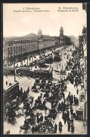 AK St. Pétersbourg, Perspective de Nevski, Strassenbahn