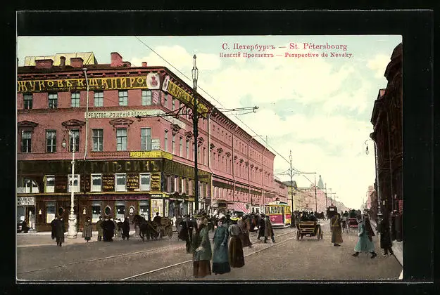 AK St. Petersbourg, Perspective de Nevsky, Strassenbahn