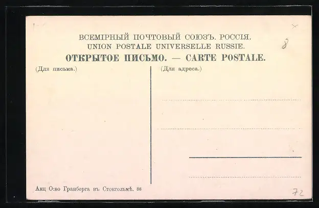 Personenbezogene Daten auf der Rückseite der Karte wurden durch blauen Textmarker unkenntlich gemacht. Die blauen Stellen sind auf die Vorderseite durchgeweicht und wirken sich negativ auf das Postkartenfoto aus