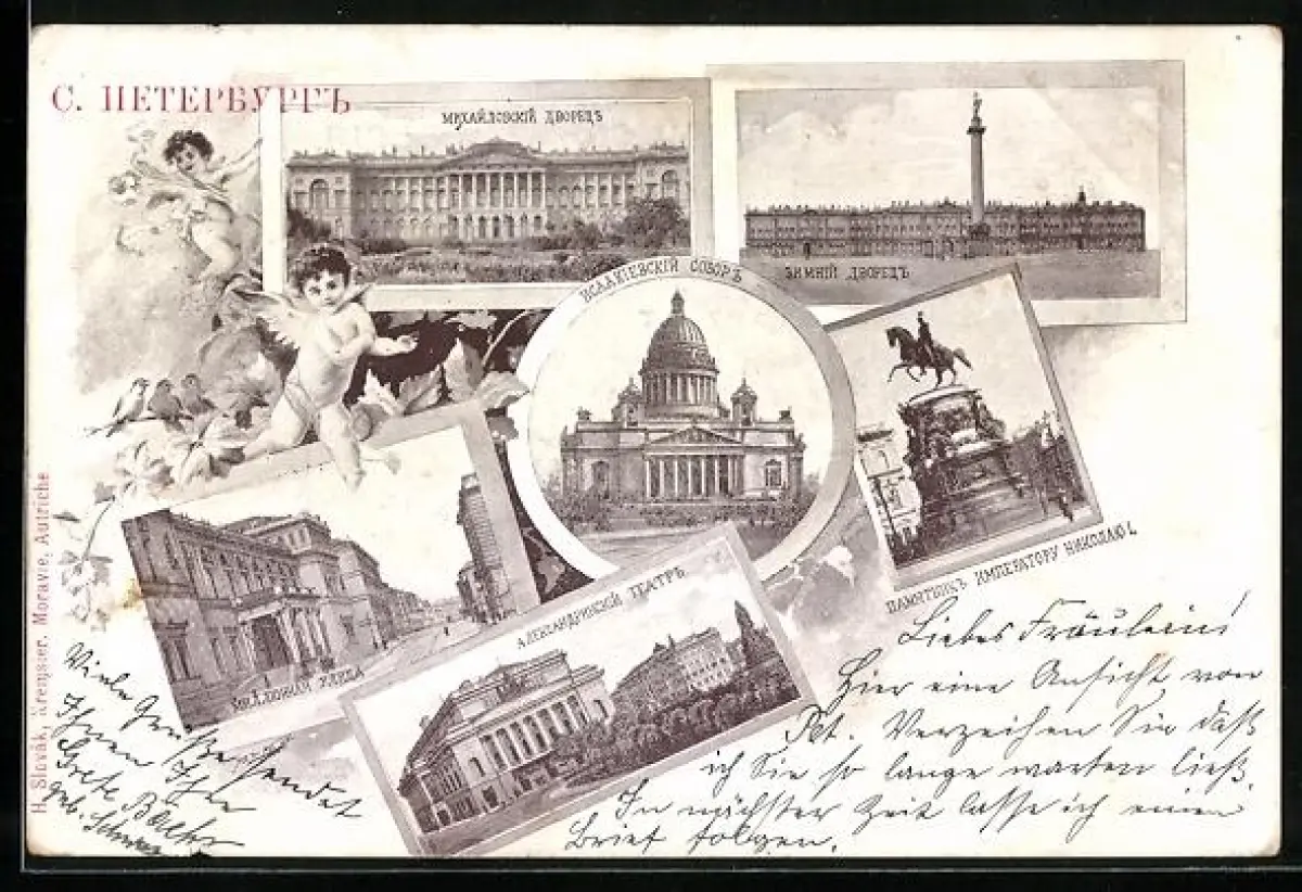 AK St. Petersburg, Winterpalast, Denkmal Zar Nikolaus I., Alexandrinski-Theater