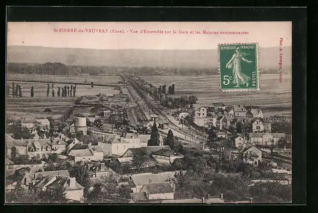 AK St-Pierre-du-Vauvray, Vue d`Ensemble sur la Gare et les Maisons environnantes