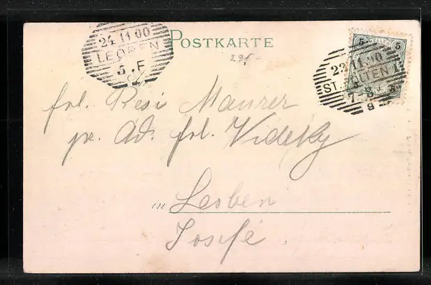 alte Ansichtskarte, gelaufen 1900, Stempelspur, guter Zustand