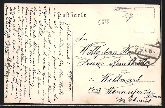 alte Ansichtskarte, gelaufen 1910, Briefmarke entfernt, rückseitig Oberflächenschaden, guter Zustand
