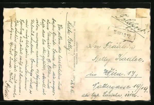 alte Ansichtskarte, gelaufen 1940, rückseitig Klebe- und Papierreste, rückseitig Oberflächenschaden, Eckknicke re. oben, guter Zustand