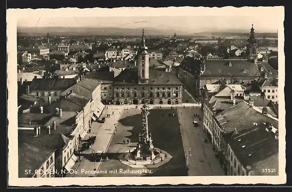 AK St. Pölten /N.Ö., Panorama mit Rathausplatz
