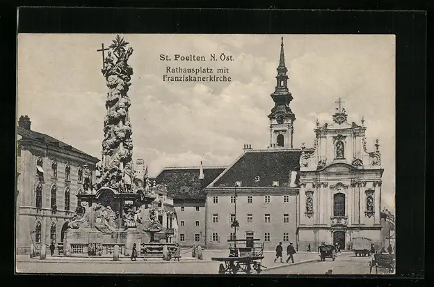 AK St. Pölten, Rathausplatz mit Franziskanerkirche