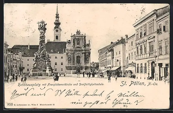 AK St. Pölten, Rathausplatz mit Franziskanerkirche