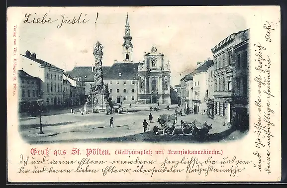 AK St. Pölten, Rathausplatz mit Franziskanerkirche