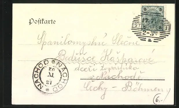 alte Ansichtskarte, gelaufen 1902, Stempelspur, guter Zustand