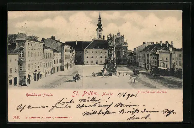 AK St. Pölten, Rathhaus-Platz mit Franziskaner-Kirche