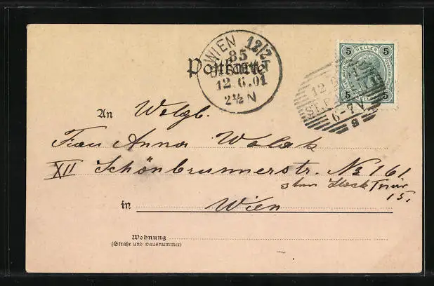 alte Ansichtskarte, gelaufen 1901, Stempelspur, guter Zustand