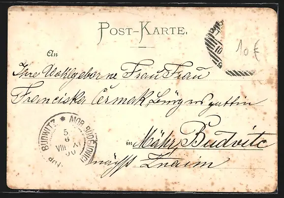 gelaufen 1900, Briefmarke entfernt, guter Zustand