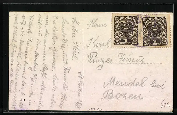 alte Ansichtskarte, gelaufen, Eckknick oben re., guter Zustand