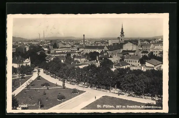 AK St. Pölten, Teilansicht aus der Vogelschau mit Strasse