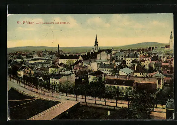 AK St. Pölten, Totalansicht vom Kaiserwald aus gesehen