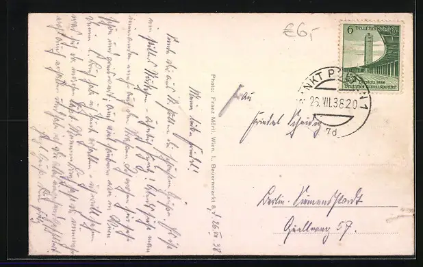 gelaufen 1938, Einriss li. unten, guter Zustand