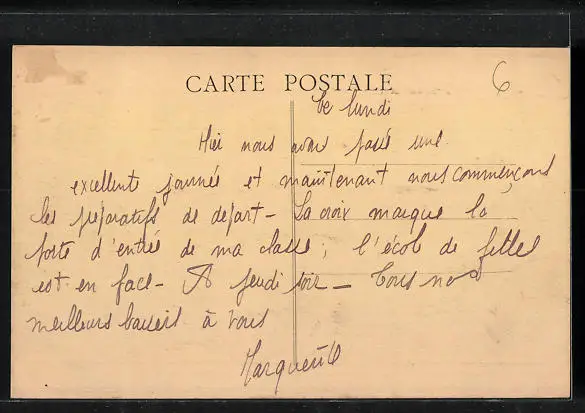 Personenbezogene Daten auf der Rückseite der Karte wurden durch blauen Textmarker unkenntlich gemacht. Die blauen Stellen sind auf die Vorderseite durchgeweicht und wirken sich negativ auf das Postkartenfoto aus