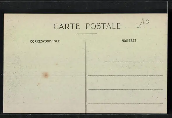 Personenbezogene Daten auf der Rückseite der Karte wurden durch blauen Textmarker unkenntlich gemacht. Die blauen Stellen sind auf die Vorderseite durchgeweicht und wirken sich negativ auf das Postkartenfoto aus