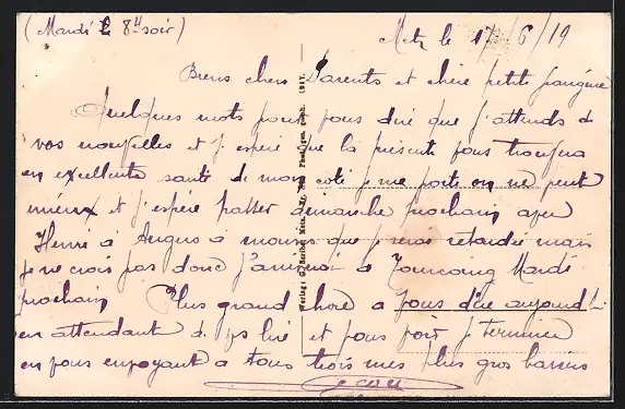 ungelaufen, Rückseite beschrieben 1919, guter Zustand