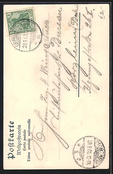alte Ansichtskarte, gelaufen 1903, Stempelspur, guter Zustand