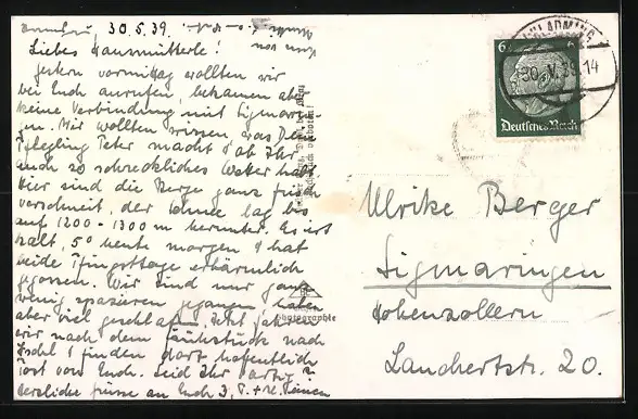 alte Ansichtskarte, gelaufen 1939, guter Zustand