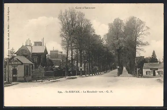 AK St-Servan, le Mouchoir vert, allée bordée d`arbres et bâtiments adjacents