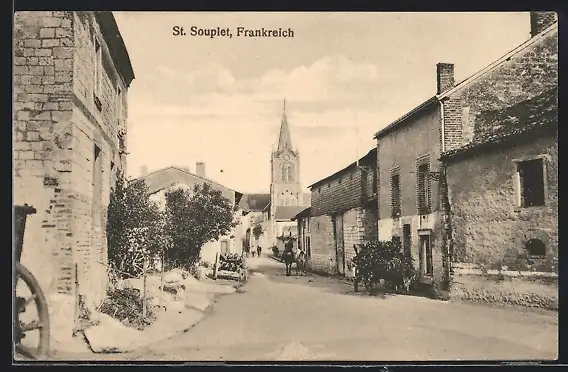 AK St. Souplet, Ortsansicht mit Strassenpartie
