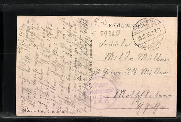 gelaufen 1916 als Feldpost, guter Zustand