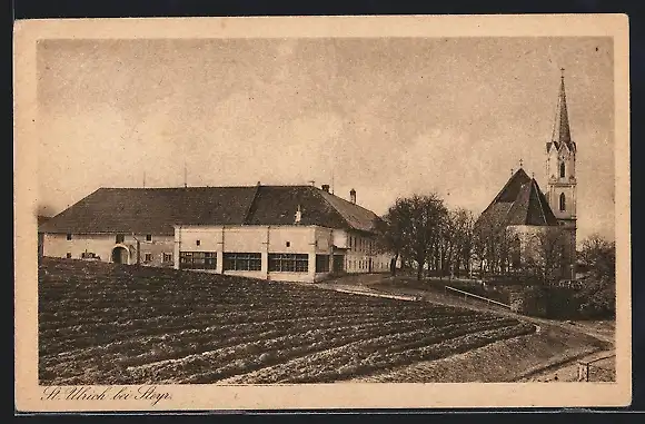 AK St. Ulrich bei Steyr, Ortspartie mit Kirche