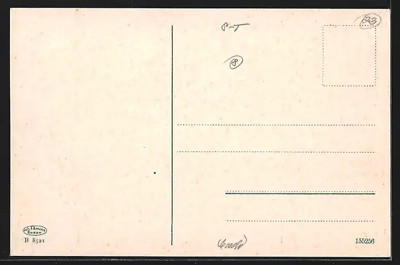 Personenbezogene Daten auf der Rückseite der Karte wurden durch blauen Textmarker unkenntlich gemacht. Die blauen Stellen sind auf die Vorderseite durchgeweicht und wirken sich negativ auf das Postkartenfoto aus