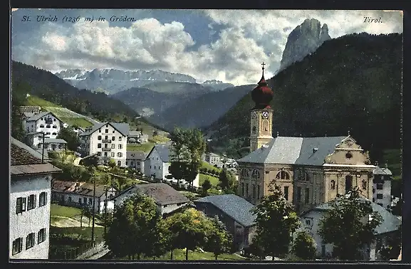 AK St. Ulrich in Gröden, Partie an der Kirche