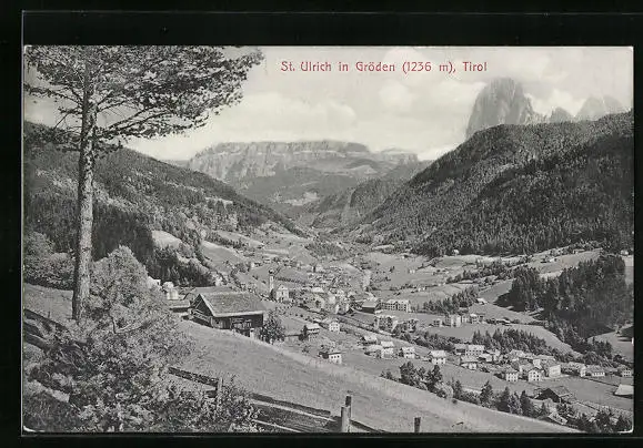 AK St. Ulrich in Gröden, Totalansicht mit Umgebung