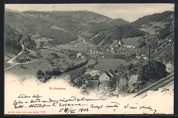 AK St-Ursanne, Teilansicht mit Flusspartie