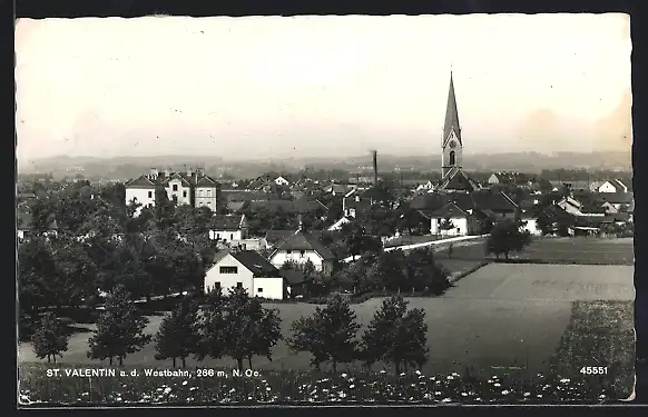 AK St. Valentin a. d. Westbahn, Ortsansicht mit Kirche