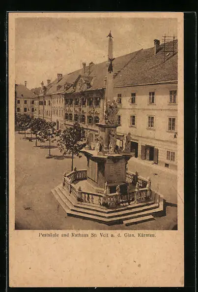 AK St. Veit a. d. Glan, Pestsäule und Rathaus
