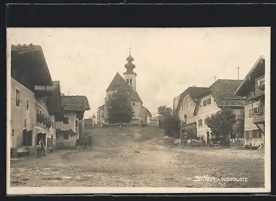 AK St. Veit im Pongau, Strassenansicht mit Kirche
