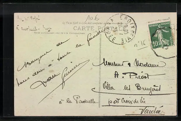 Personenbezogene Daten auf der Rückseite der Karte wurden durch blauen Textmarker unkenntlich gemacht. Die blauen Stellen sind auf die Vorderseite durchgeweicht und wirken sich negativ auf das Postkartenfoto aus