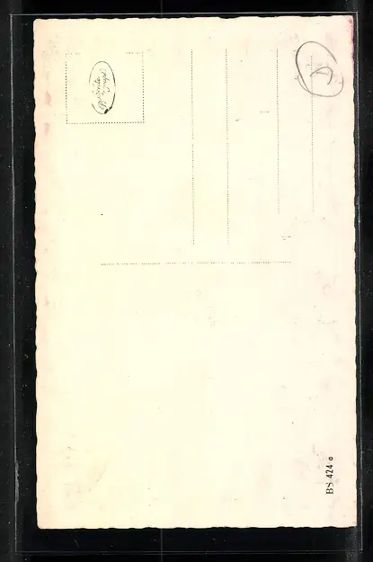 Personenbezogene Daten auf der Rückseite der Karte wurden durch blauen Textmarker unkenntlich gemacht. Die blauen Stellen sind auf die Vorderseite durchgeweicht und wirken sich negativ auf das Postkartenfoto aus